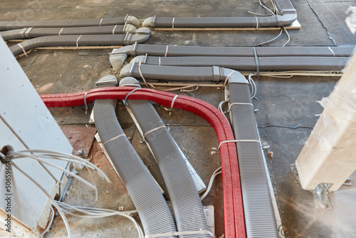 Kabel und Rohre für Belüftungssystem auf dem Boden