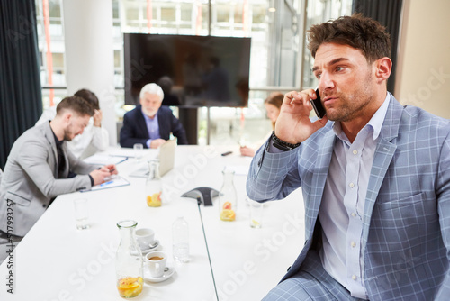 Junger Start-Up Gründer telefoniert mit dem Handy