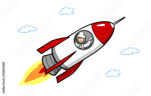 Astronaut steigt in Raumschiff beim Start von Rakete