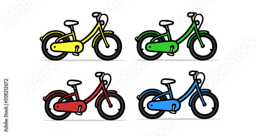 Verschieden bunte fabrbige Cartoon Kinderfahrräder