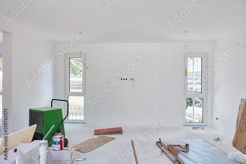 Painting work and renovation in living room with terrace