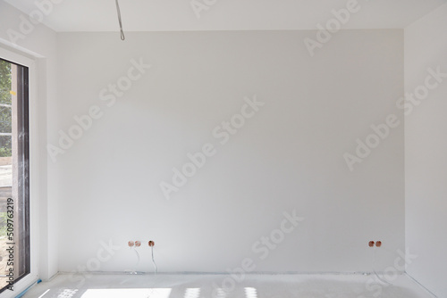 Weiße Wand im Raum nach Malerarbeiten beim Hausbau