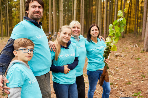 Kinder und Familie als Freiwillige beim Baum pflanzen