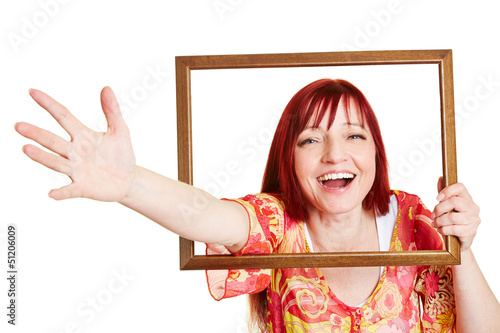 Hand mit Lupe sucht in Portraits als Umfrage und Marktforschung Konzept