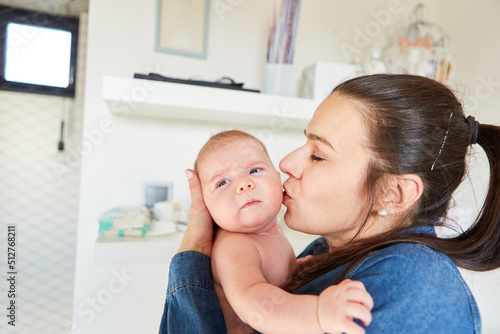Mutter gibt Baby einen zärtlichen Kuss auf die Stirn