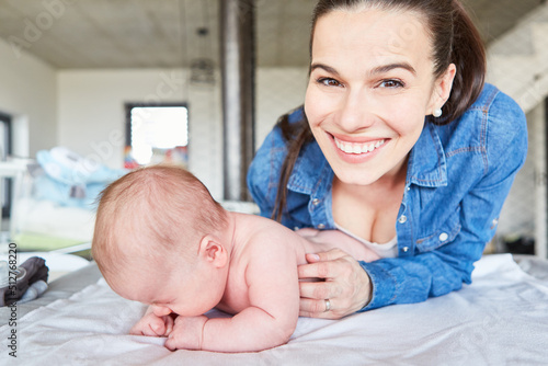 Glücklich lächelnde Mutter und neugeborenes Baby