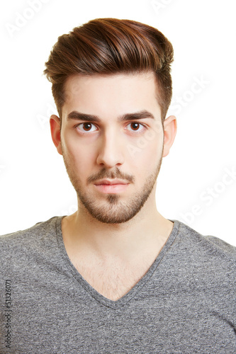 Junger Mann schaut ernst in die Kamera