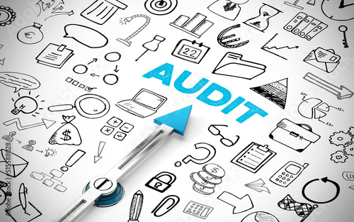 Audit Konzept mit Icons. Kompass und Schriftzug