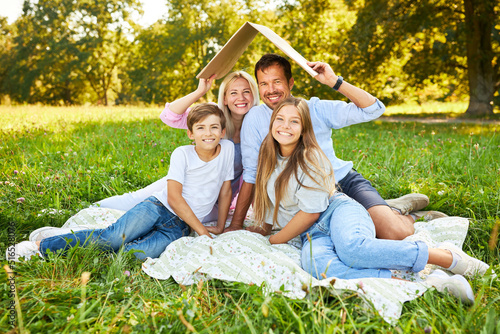 Glückliche Familie mit Zeichnung vom Traumhaus