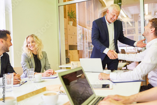 Panorama aus Silhouetten von Geschäftsleuten vor bunten Business Portraits