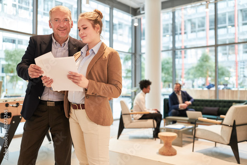 Business Berater und junge Geschäftsfrau mit Unterlagen