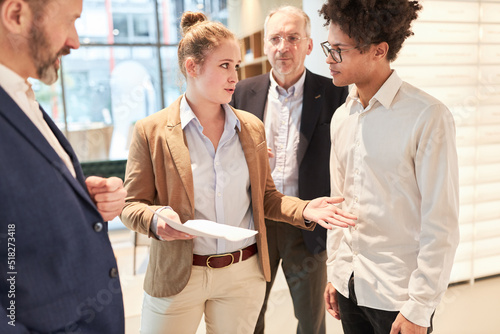 Junge Frau als Start-Up Gründer diskutiert mit Kollegen