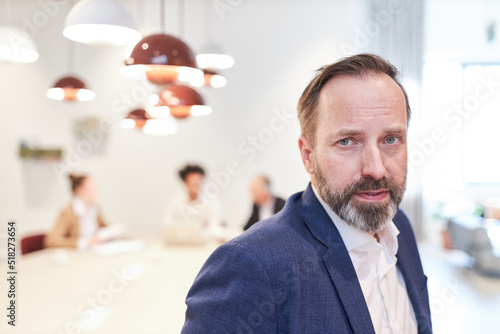 Business Mann als skeptischer Unternehmer im Konferenzraum