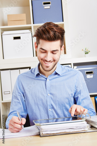 Junger Geschäftsmann arbeitet am Laptop im Büro