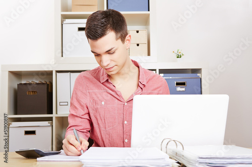 Junger Geschäftsmann arbeitet am Laptop im Büro