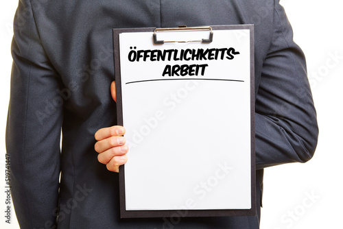 Klemmbrett mit Überschrift Öffentlichkeitsarbeit