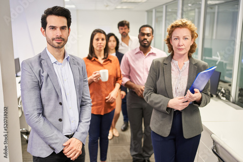 Pfeil vor Mitarbeiter Portraits als Unternehmenswachstum Konzept