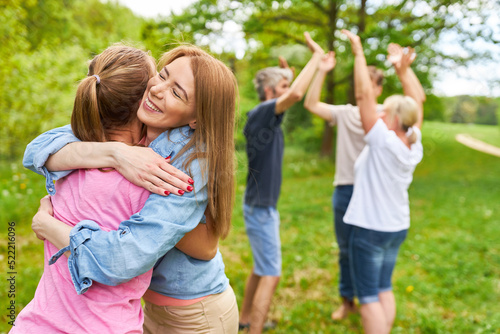 Zwei Frauen umarmen und freuen sich beim Teamevent