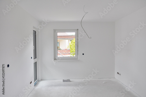 Kleiner weißer Raum mit Fenster nach Malerarbeiten