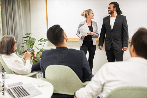 Junge Business Frau bei einer Präsentation am Whiteboard
