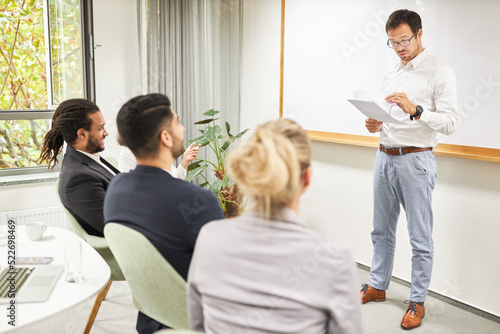 Junge Business Frau bei einer Präsentation am Whiteboard