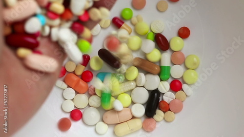 Many pills and medicine falling down