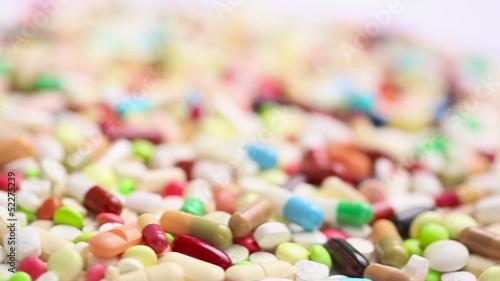 Lots of colorful medicines drugs in a heap