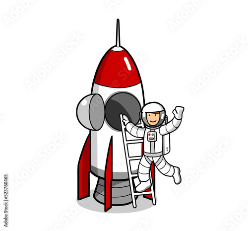 Astronaut steigt in Raumschiff beim Start von Rakete