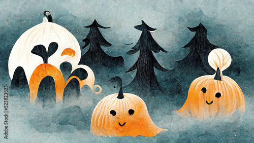 Orange jack-o-lantern pumpkin as Happy Halloween greeting card
