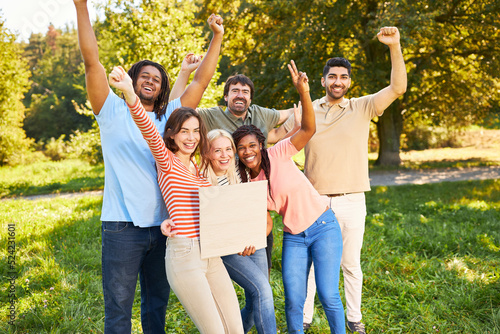 Junge Leute als Sieger Mannschaft halten Schild mit Team