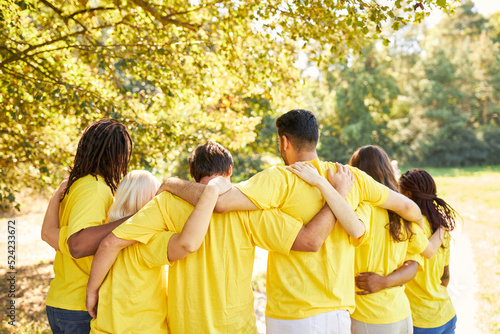 Young people arm in arm as a community and team