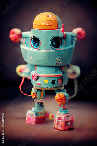 Cute blue toy robot as flat character design illustration (Generative AI)