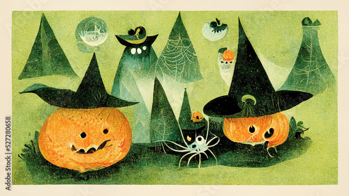 Spooky haunted house with jack-o-lanterns on graveyard for Halloween