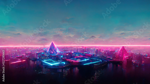 Neon synthwave city as metaverse concept illustration