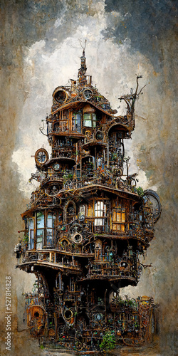 Elegant historic German mansion engulfed by lush greenery on a sunny day