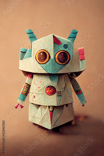 Cute blue toy robot as flat character design illustration (Generative AI)