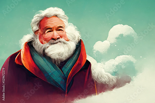 Realistic Santa Claus with sparkling eyes against gray backdrop