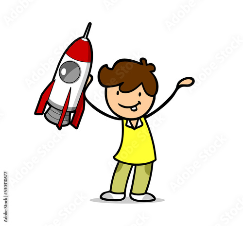 Kleiner Junge mit Raumschiff Modell als Spielzeug