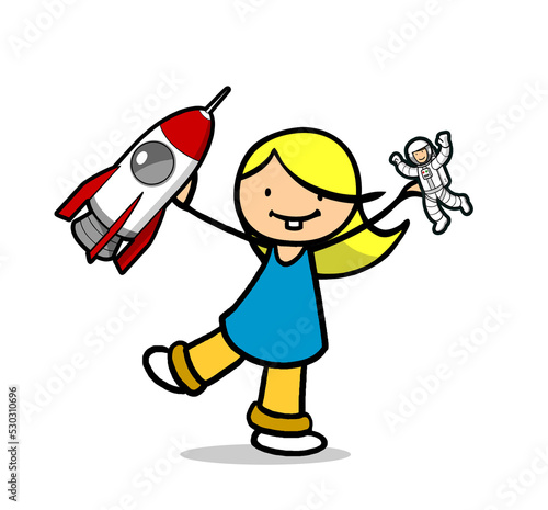 Spielendes Mädchen mit Astronaut und Raumschiff