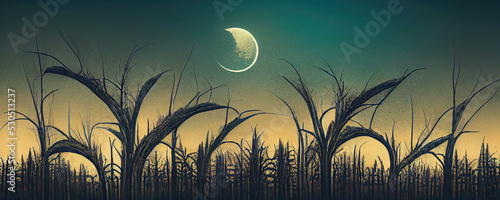 Abstract nature landscape at night with moon as panorama background (Generative AI)