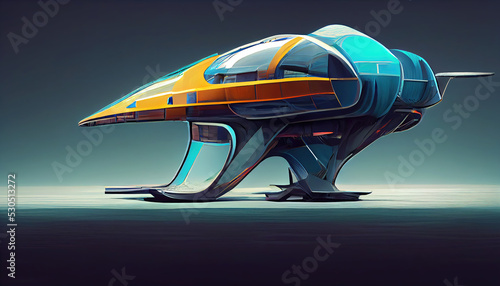 Abandoned wreck of futuristic spaceship interior with control panels (Generative AI)