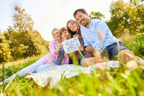 Glückliche Familie mit Zeichnung vom Traumhaus