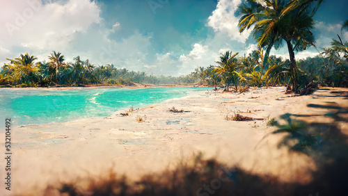 Empty tropical sand beach as wallpaper background (Generative AI)