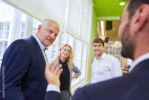 Panorama aus Silhouetten von Geschäftsleuten vor bunten Business Portraits