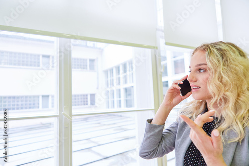 Geschäftsfrau telefoniert mit dem Smartphone im Büro