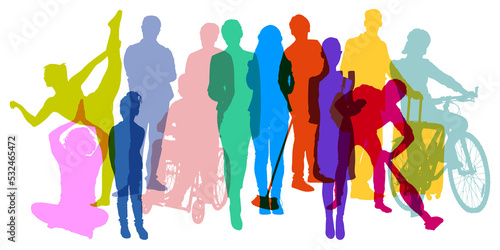 Panorama aus bunten Silhouetten von aktiven Menschen beim Sport