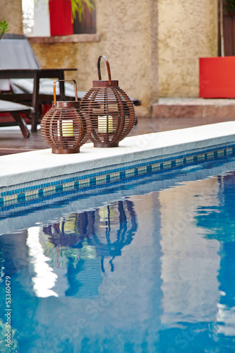 Pool mit blauen Wasser in einem Hotel