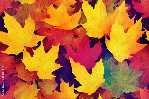 Colorful watercolor illustration of autumn leaves and seasonal nature elements