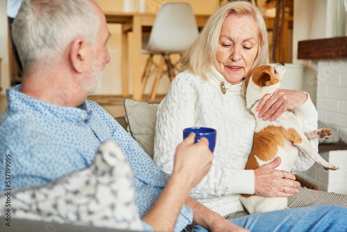 Elderly retired couple drinking coffee
