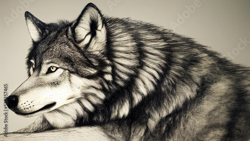 Majestic wolf portrait in a studio setting showcasing the beauty and elegance of Canis lupus with a neutral background